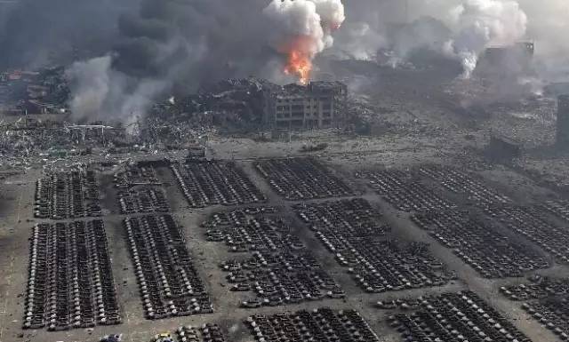 距离爆炸中心400米左右便是进口汽车停车场,爆炸发生后,停满6000辆左右新车的停车场损失惨重,上千台被彻底烧毁,大部分车辆受损严重。