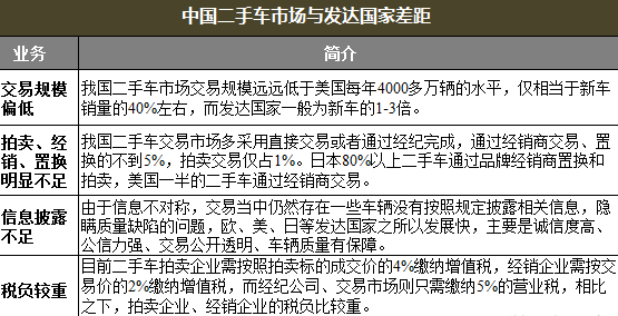 与活跃的汽车市场相比,我国二手车流通发展还是比较滞后,与发达国家相比还是差距比较明显,这种差距的产生是与我国国民生活水平、消费习惯、二手车和新车目前所处的发展阶段有一定的关系。