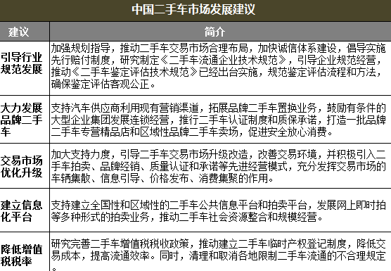 随着汽车市场从增量市场向存量市场的转换,二手车流通对扩大汽车循环消费的作用将日益凸显。另一方面,截至2013年底我国汽车保有量已超过1.4亿辆,而且每年以1000多万辆新增汽车的规模扩大,如此庞大的保有量和需求规模,意味着汽车市场将逐渐进入更新换代高峰期,报废汽车回收拆解在汽车产业和循环经济发展中的地位将更加重要。为了加快培育二手车市场,管理部门今后可能从以下五个方面着手。