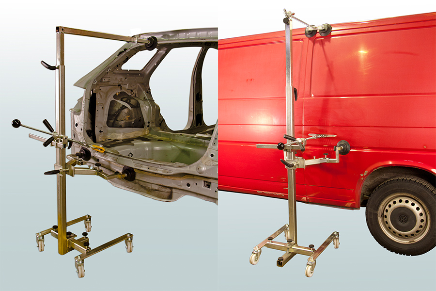 根据保险公司提供的数据,车身外板损伤在所有碰损车中的比例大约是80%。外板损伤经常发生金属板的鞘匣结构上,且不能从汽车内部进行修复作业。智能修复设备从外部校正可以大大地节省修复时间,因为它能避免拆卸和重新组装车门以及车身其他结构。因此,该智能修复设备已经成为现今维修厂最重要的设备之一。