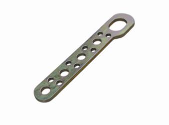 构造:弹簧钢板多处加工定位孔 最大承载力:15000KG 用途:用于某个位置的工艺孔锁定拉伸