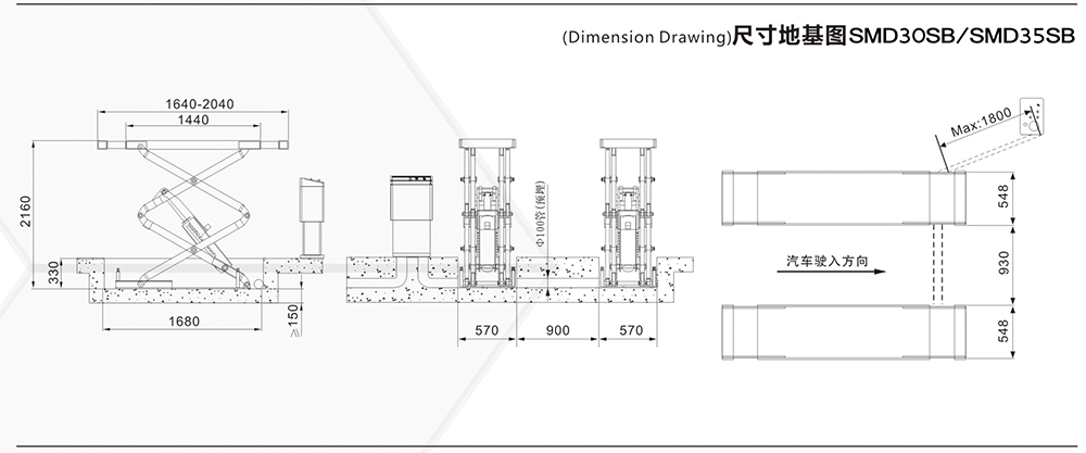 SMD35SB | 380V/3PH or 220V/1PH | 6-8kg/cm² | 2.2KW | 1640-2040mm | 3.5T | 330-2160mm |