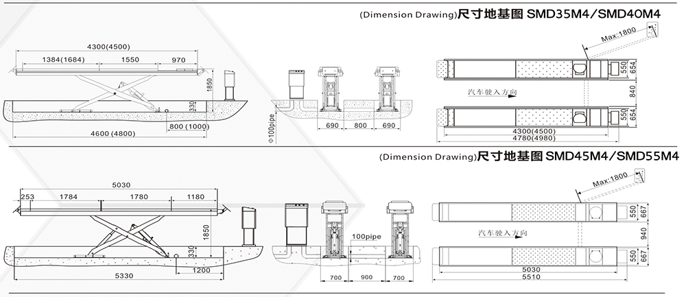 SMD40M4 | 380V/3PH or 220V/1PH | 6-8kg/cm² | 2.2KW | 4.0T | 330-1850mm | 2.0T | 375mm |