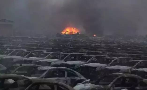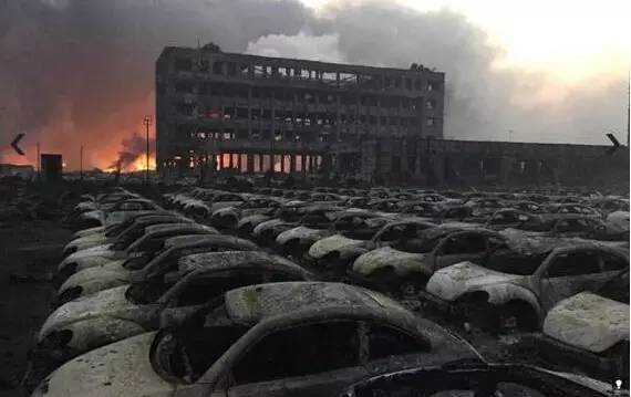 距离爆炸中心400米左右便是进口汽车停车场,爆炸发生后,停满6000辆左右新车的停车场损失惨重,上千台被彻底烧毁,大部分车辆受损严重。