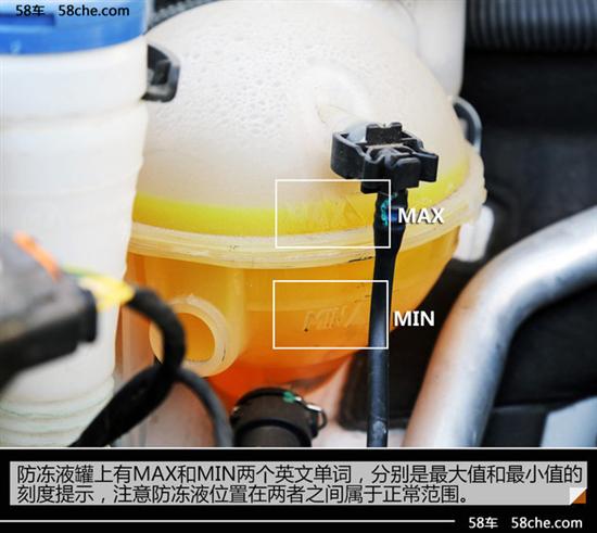 为了确保发动机冷却系统的正常工作,要定期更换防冻液,更换周期一般为两年或4万公里(注意:不同品牌和车型存在差异,更换周期以车型官方指定周期为准。)。同时,我们也可以养成日常检查的习惯,打开发动机盖后可以直接找到防冻液罐,上边有MAX和MIN两个英文单词,分别是最大值和最小值的刻度提示,注意防冻液位置在两者之间属于正常范围,低于MIN的话需要及时补充以免影响车辆使用。