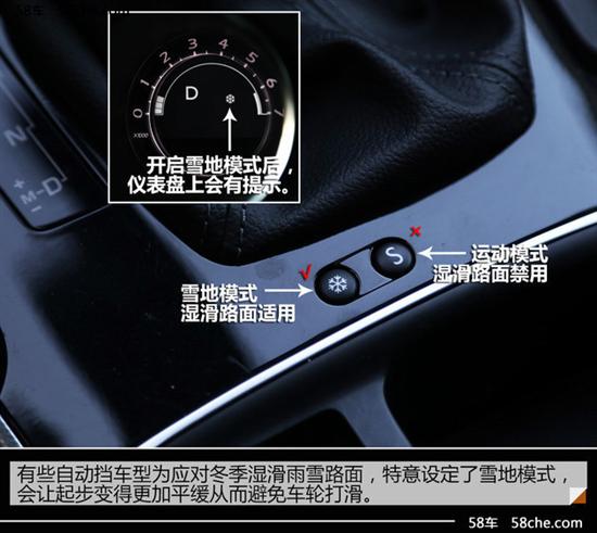 有些自动挡车型为了应对冬季湿滑雨雪路面,特意设定了雪地模式,如果有的话此时可以开启,通常雪地模式会以2挡起步,尽量降低扭矩输出值,让起步变得更加平缓从而避免车轮打滑,如果没有雪地模式的话,那么用D挡配合轻柔的油门起步。