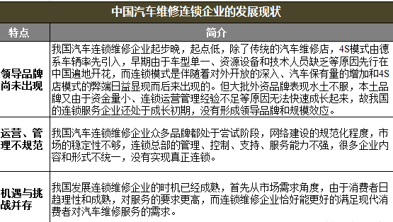 相比之下,以连锁为模式的快修店,其优势正好弥补了4S店的不足,在我国具有极其广阔的市场前景,快修连锁的发展具有明显的优势。
