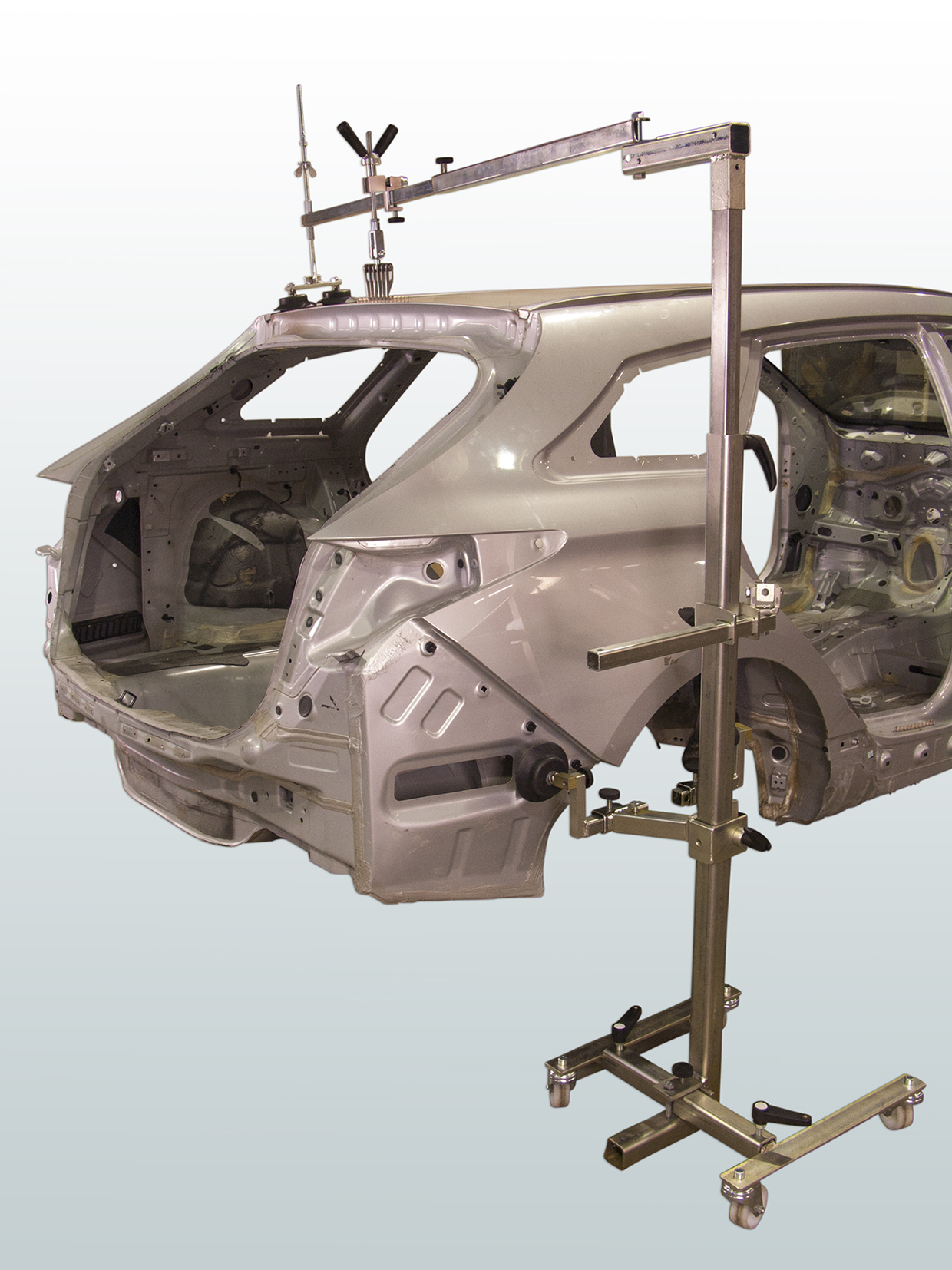 灵巧和快捷的修复是基于车轮移动的推拉螺杆,它们安装在支撑和锁止的两端。支撑和锁止的两端都可以进行调节,这样就保证了取得最好修复结果的可能性。该智能修复设备需要配置电阻焊机,以便把垫圈或波纹型金属丝等修复抓手固定在需要校正的部位上。